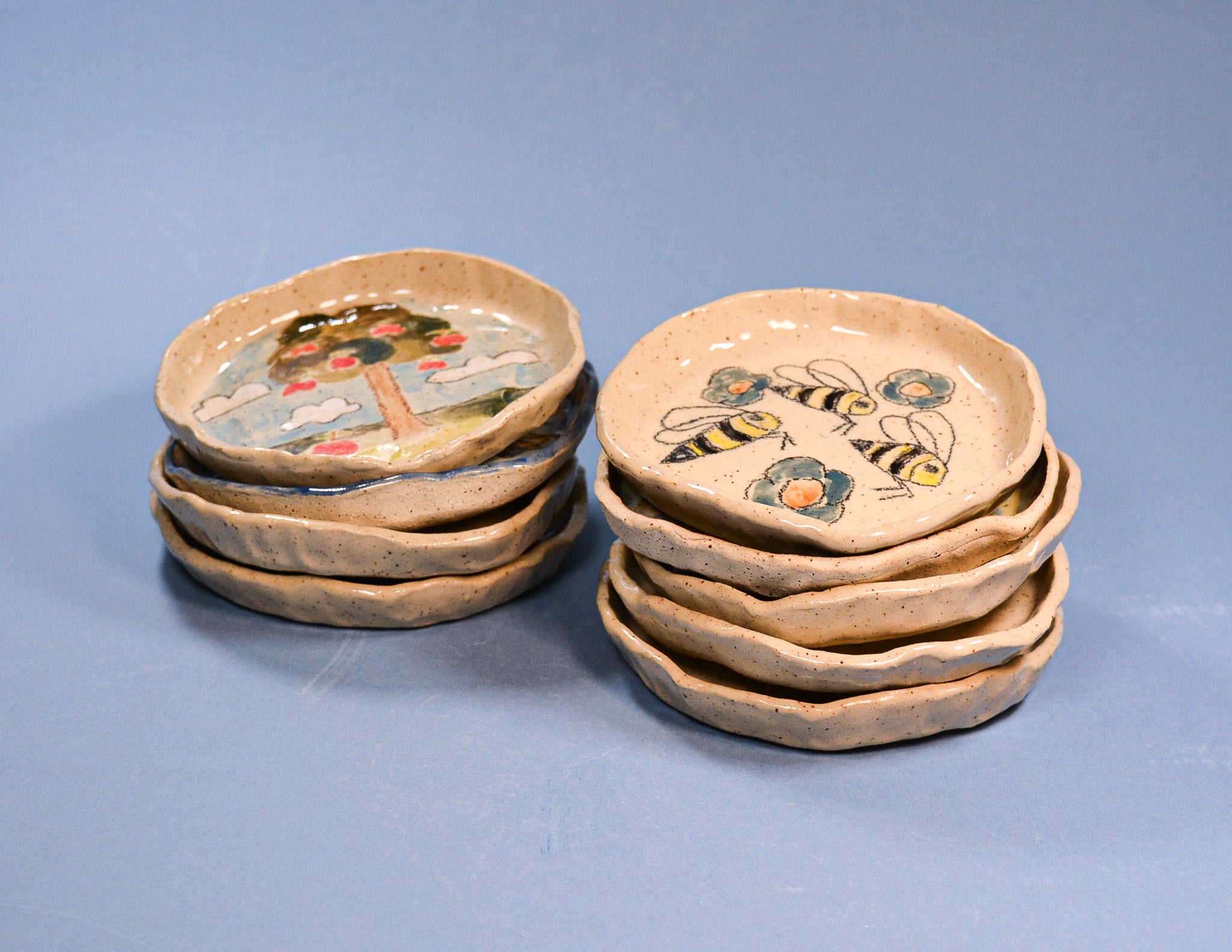 Each plate is made by hand and glazed individually, variations will occur between each piece, but thats what we think makes them special :)